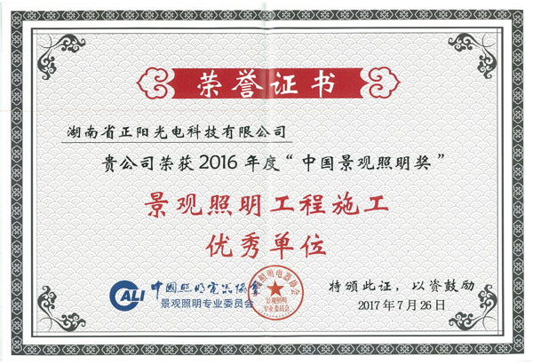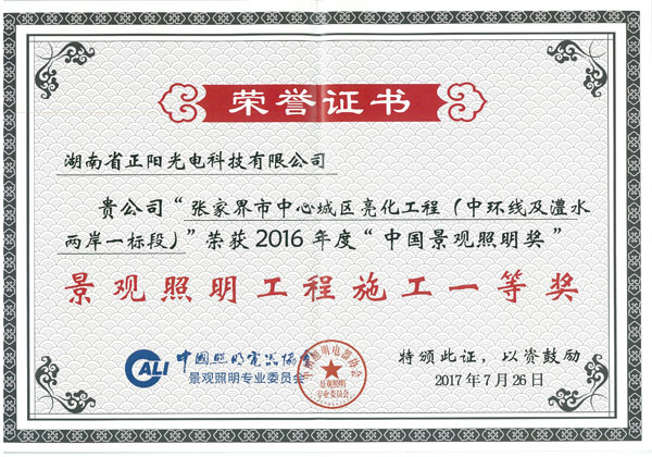 湖南省正陽(yáng)光電科技有限公司是一家從事亮化工程及大型燈光藝術(shù)的設(shè)計(jì)、制作、安裝和維護(hù)于一體的專業(yè)化公司。公司資質(zhì)齊全、管理嚴(yán)謹(jǐn)、技術(shù)先進(jìn)、實(shí)力雄厚,取得了城市及道路照明工程專業(yè)承包壹級(jí)資質(zhì)、照明工程設(shè)計(jì)專項(xiàng)甲級(jí)資質(zhì)、國(guó)家高新技術(shù)企業(yè)、國(guó)家“重質(zhì)量·守誠(chéng)信”示范企業(yè)。